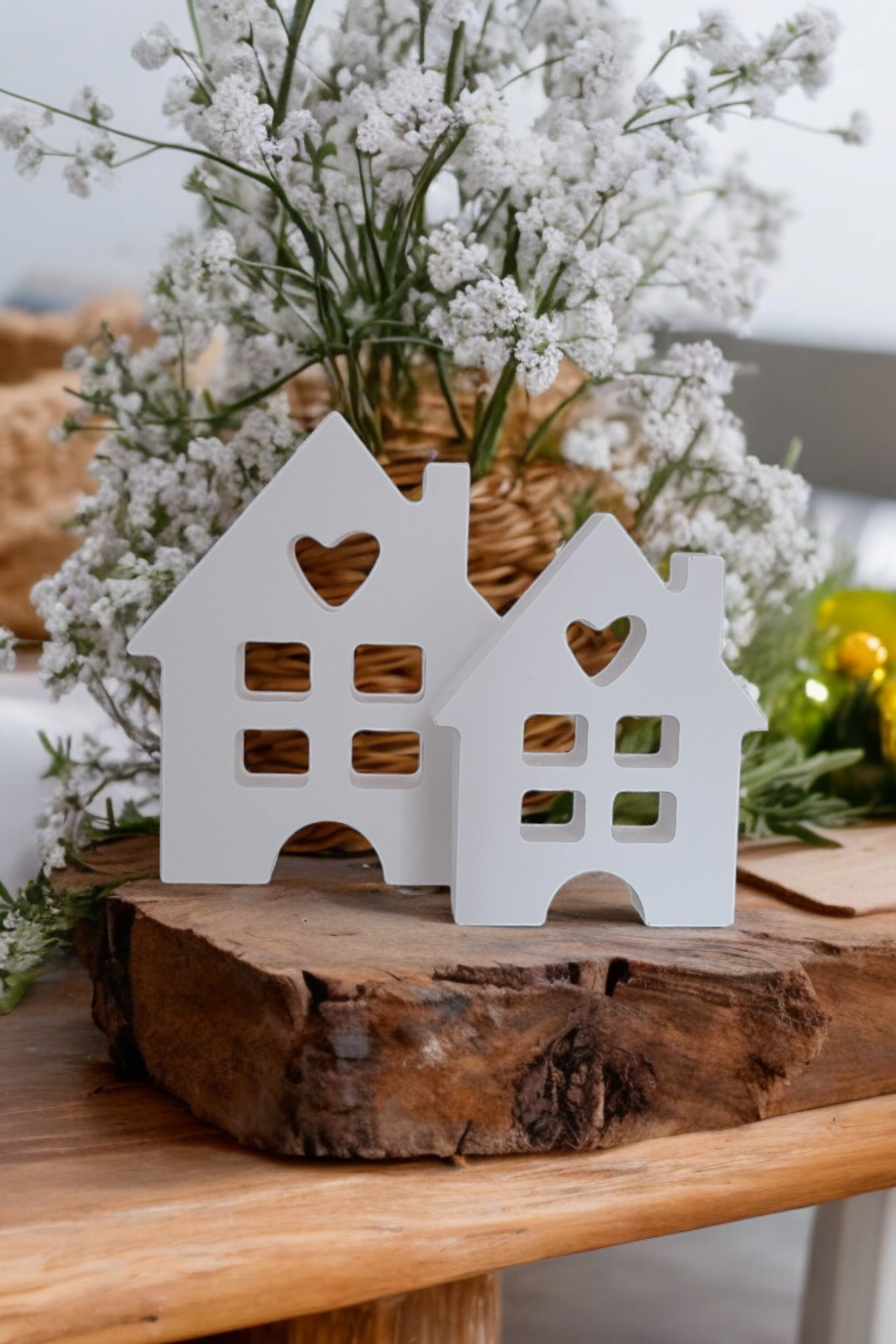 Domečkové dekorace patří mezi oblíbené doplňky, které dokážou zútulnit každý domov. Malé dekorativní domečky vyniknou na poličkách, komodách, parapetech i v sezónních aranžmá a dodají interiéru jemný a harmonický vzhled.