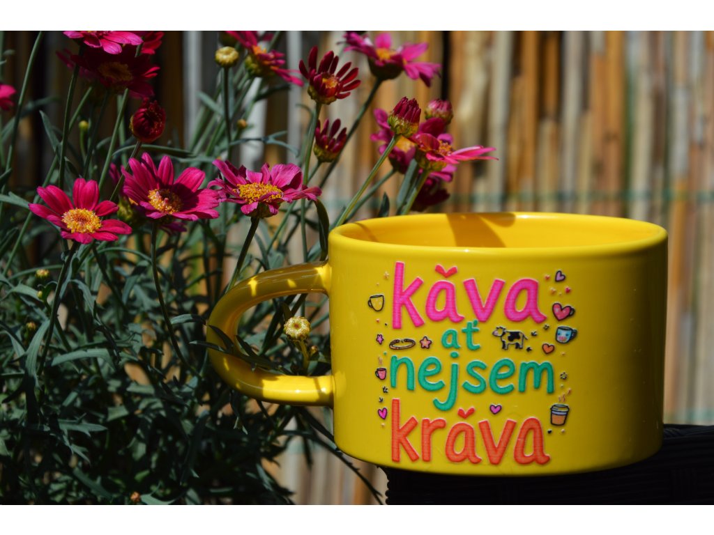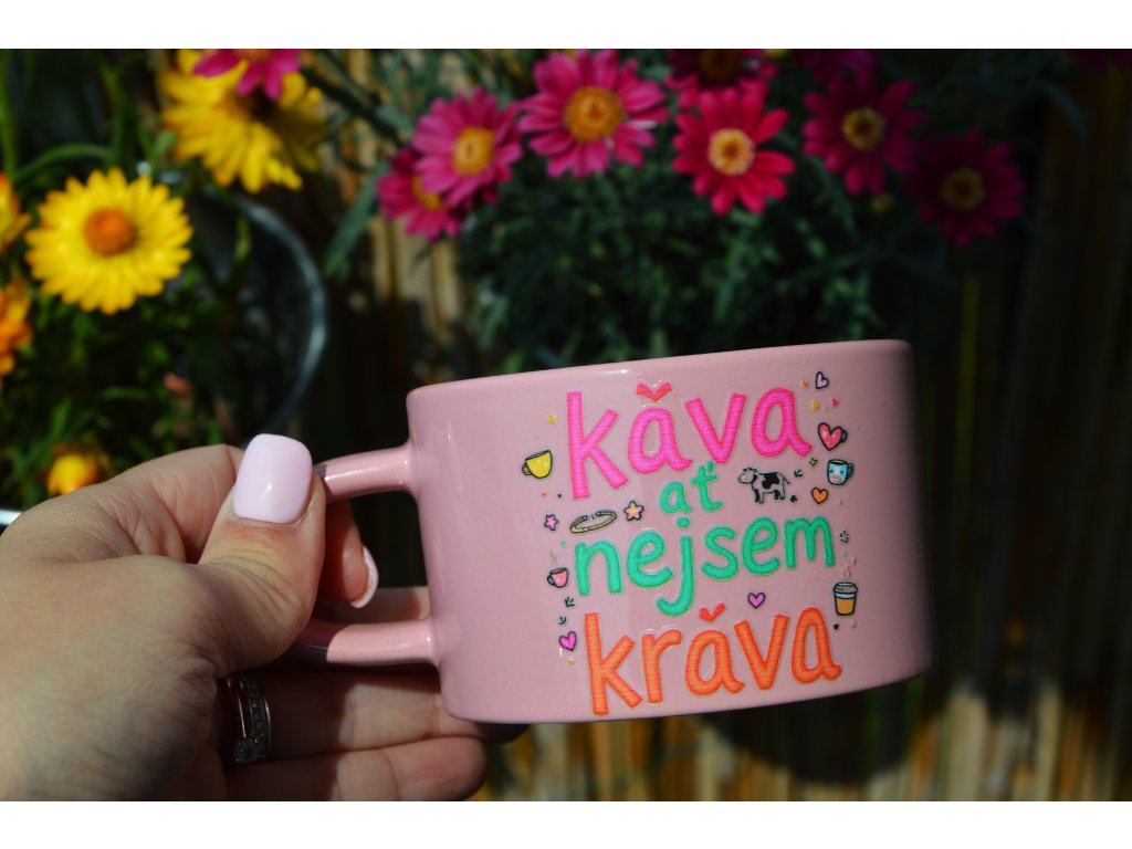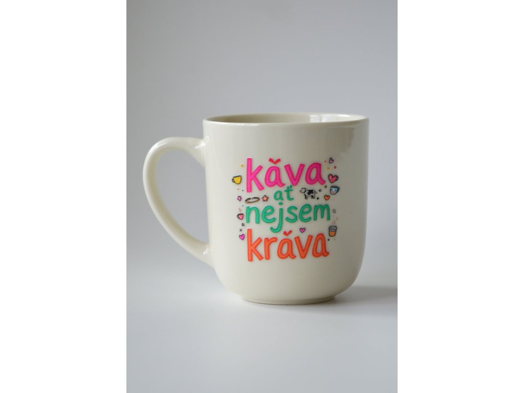 Vtipný hrníček s veselým nápisem „Káva, ať nejsem kráva“ je skvělým doplňkem pro každého, kdo si bez svého oblíbeného nápoje nedokáže představit den. Díky hravému designu zpříjemní každé ráno i pracovní pauzu a vykouzlí úsměv nejen vám, ale i vašemu okolí.