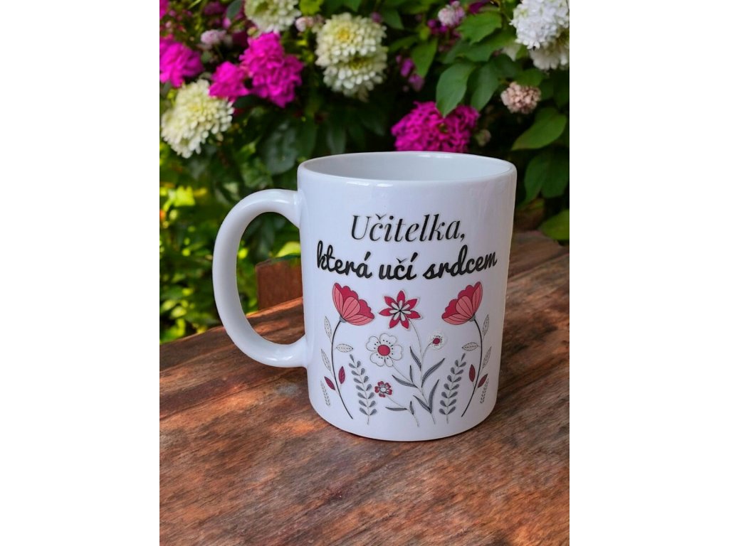 Keramický autorský hrníček s nápisem „Učitelka, která učí srdcem“ je krásným a osobním dárkem pro paní učitelku, který jí zaručeně vykouzlí úsměv na tváři. Díky objemu 330 ml je ideální na kávu, čaj nebo jiný oblíbený nápoj a stane se praktickým i srdečným doplňkem každého dne.