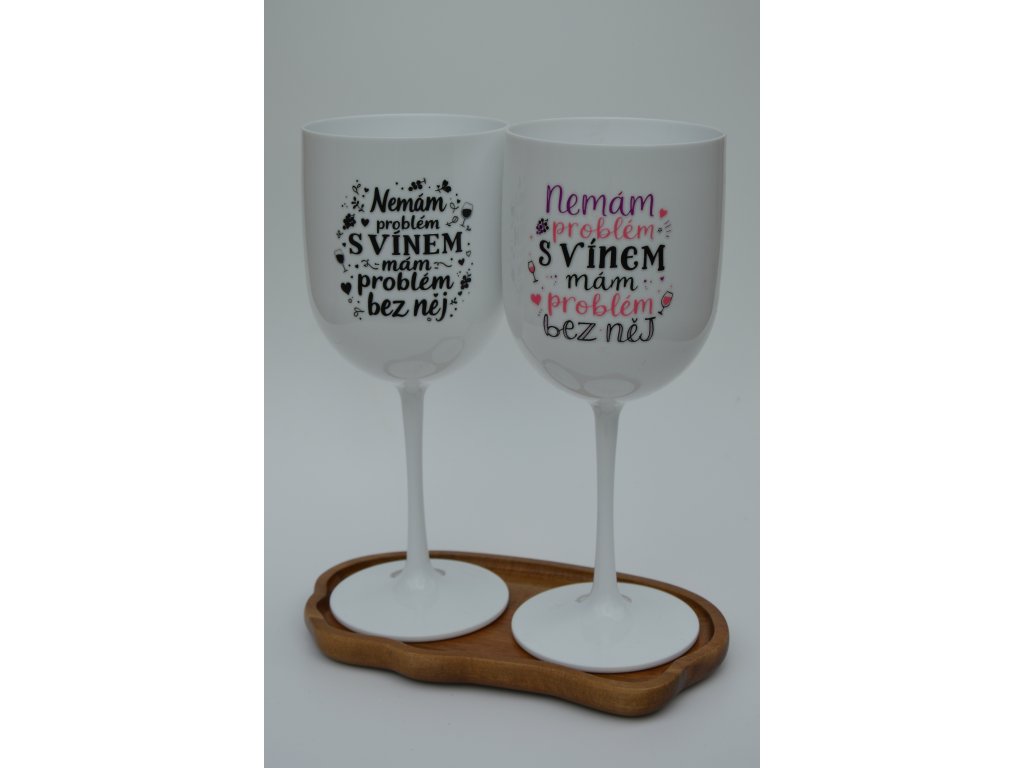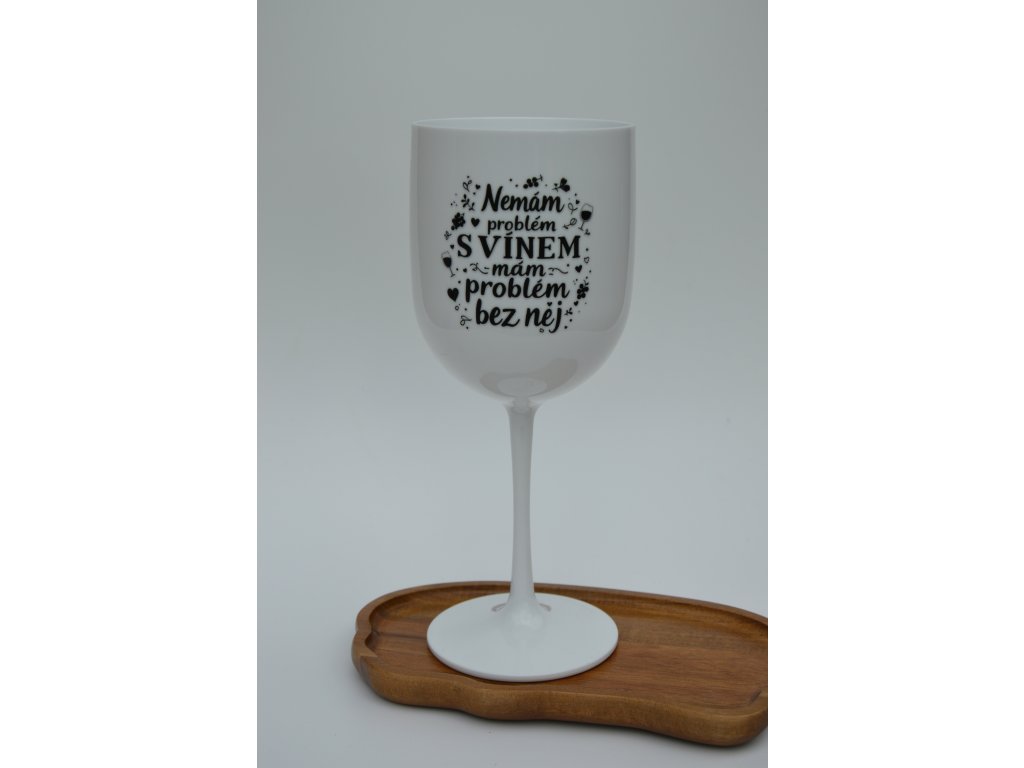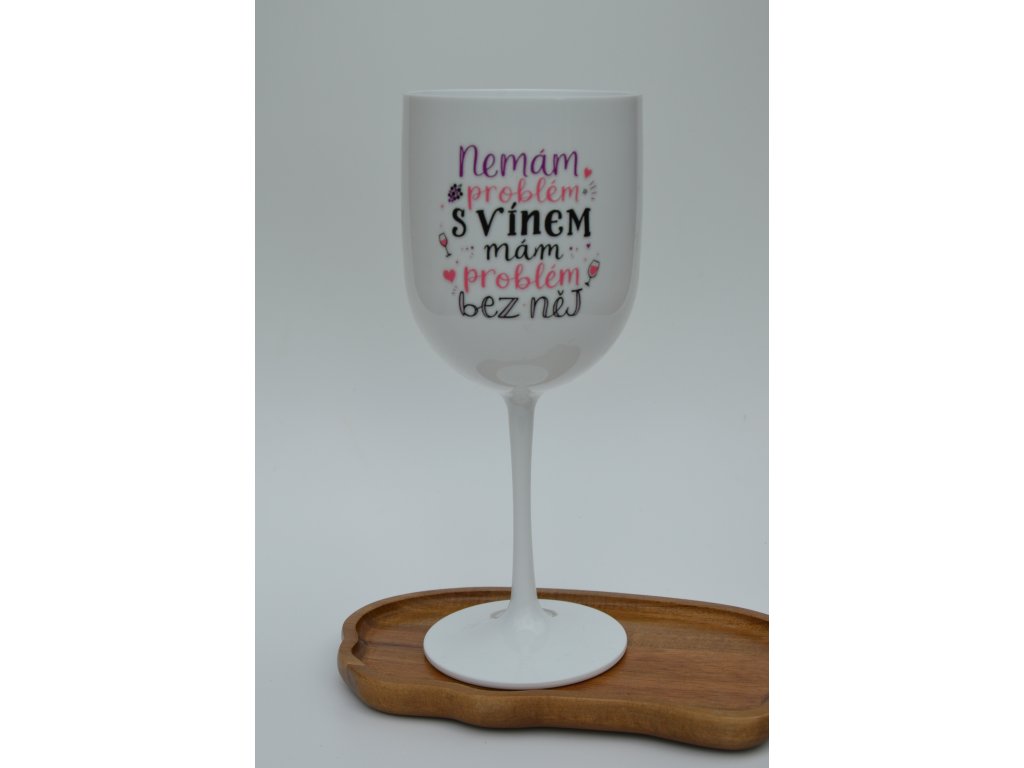 Vtipná plastová sklenice na víno s nápisem „Nemám problém s vínem, mám problém bez něj“ potěší každého milovníka dobrého vína i humoru.