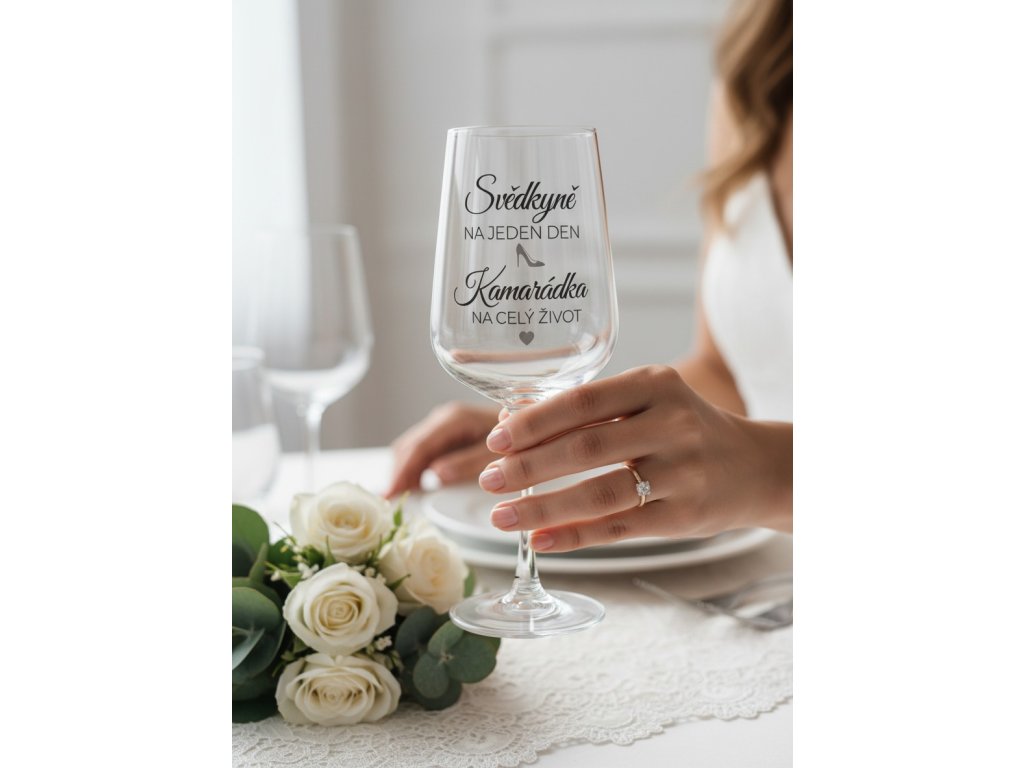 Tato stylová svatební sklenička na víno pro svědkyni je ideální jako: