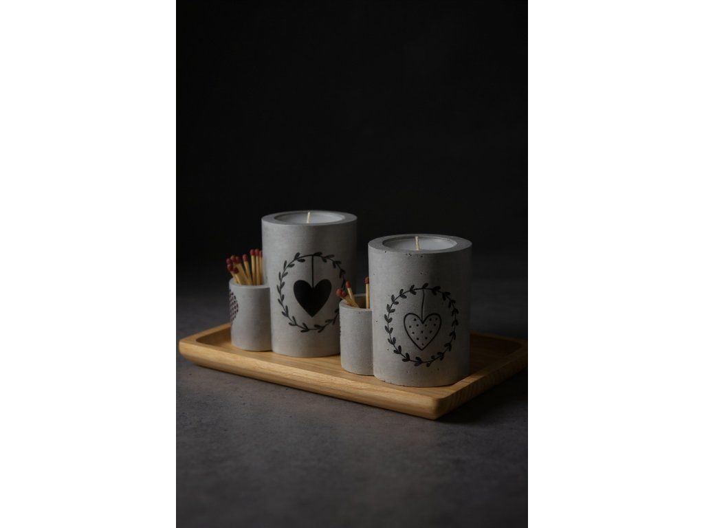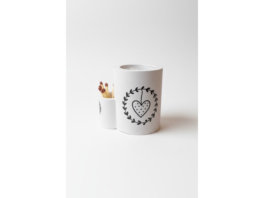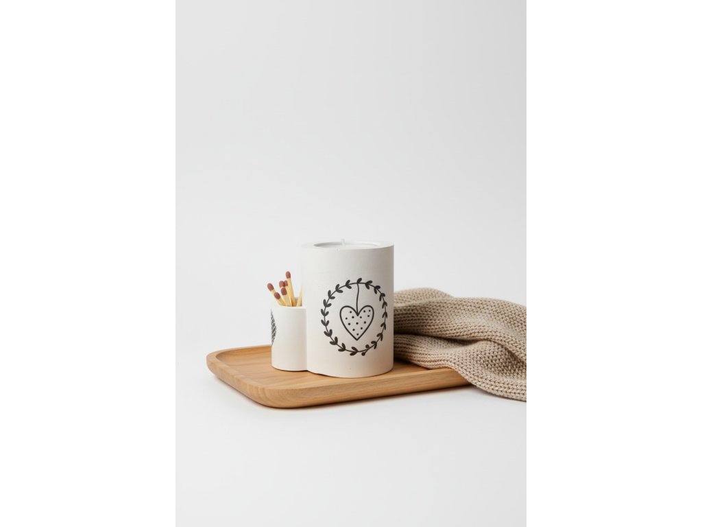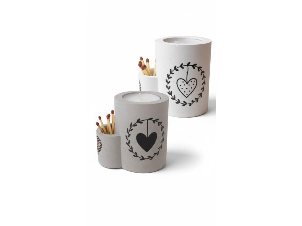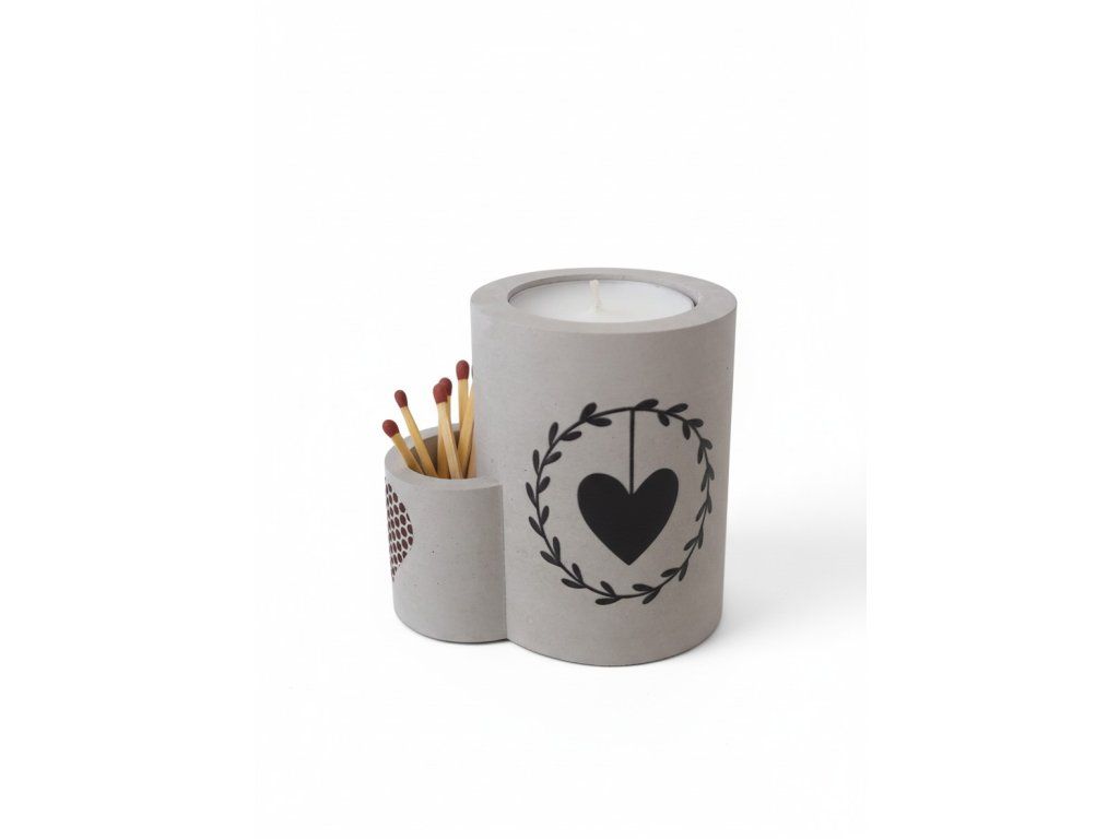 Elegantní svícínek na čajovou svíčku spojuje krásu s praktičností. Minimalistický design se srdíčkovým motivem doplňuje integrovaná přihrádka na sirky, takže máte vše potřebné vždy po ruce.
